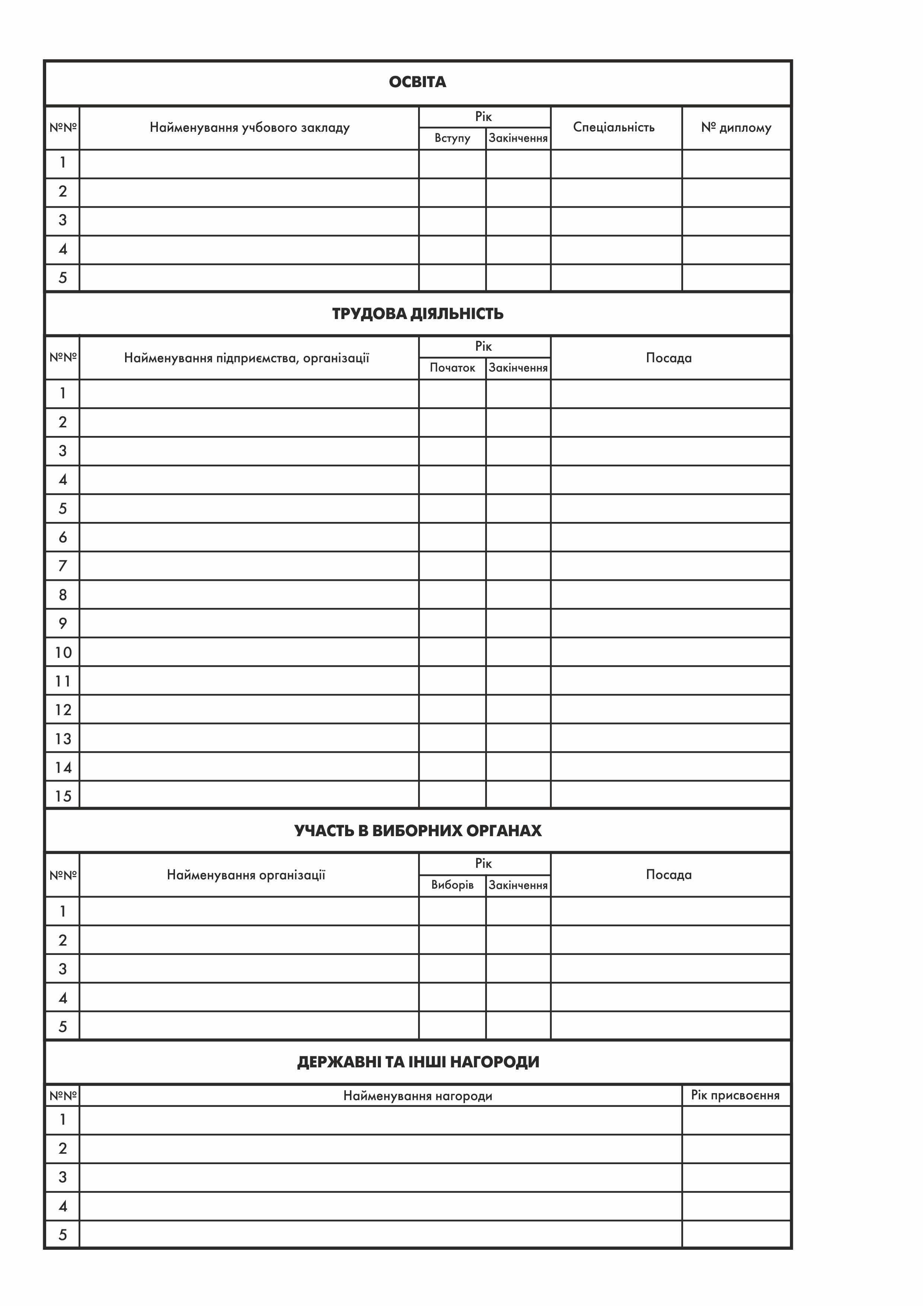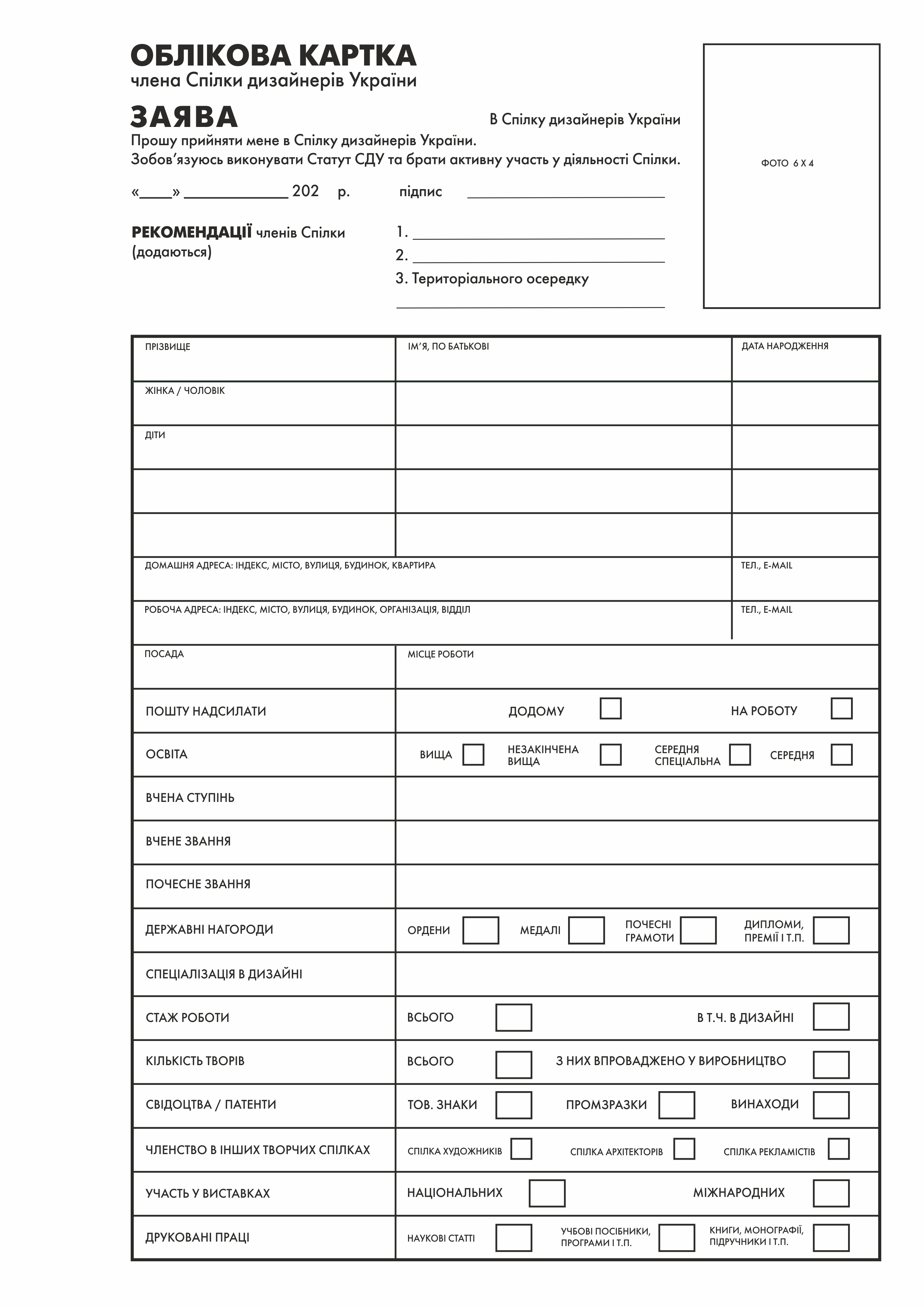 - заява та облікова картка члена СДУ (2 примірники);